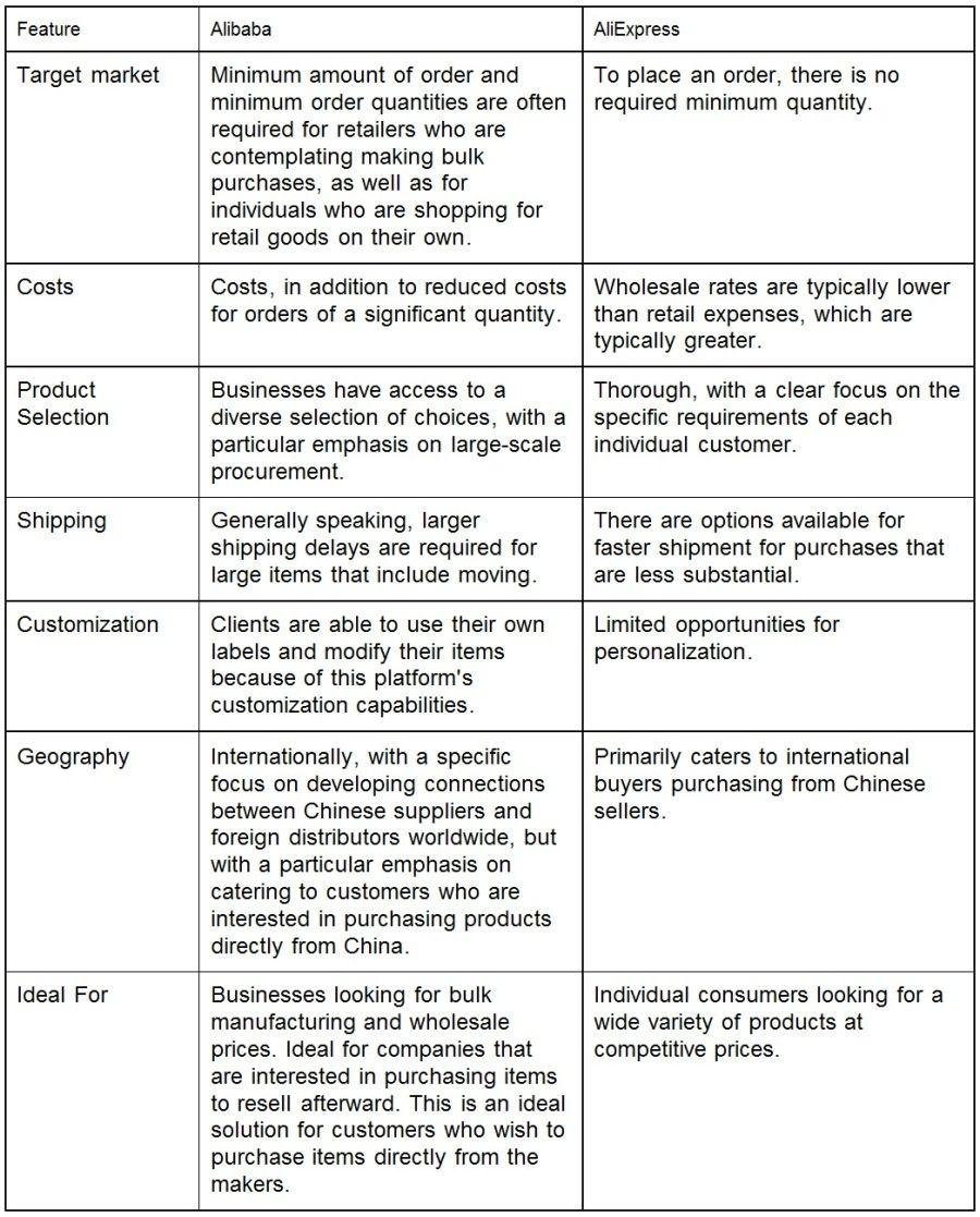 - Comparative analysis of the differences and similarities between Alibaba and AliExpress