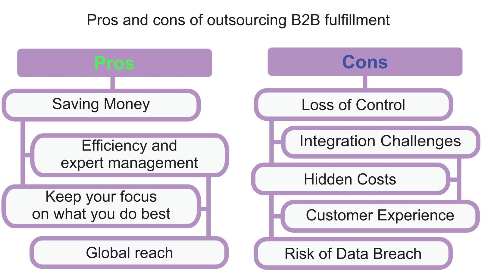 Outsourcing B2B fulfillment can be highly beneficial, particularly for businesses looking to scale quickly, reduce costs, or enter new markets. However, it is crucial to weigh these advantages against the potential risks, especially regarding control, integration, and customer experience. Careful selection of a fulfillment partner and clear contractual agreements can help mitigate some of these drawbacks.