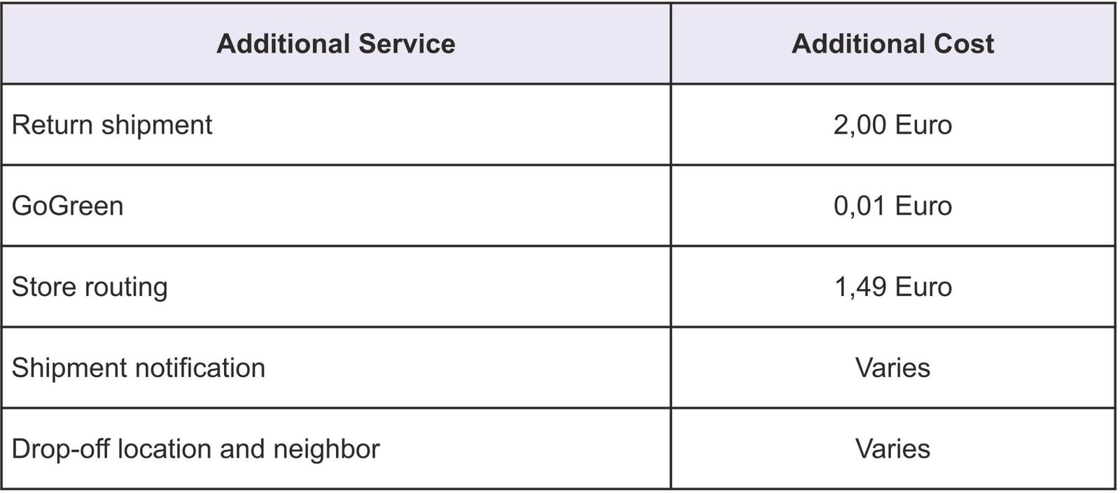 - Additional Services. Optional services such as insurance, tracking, and climate-neutral shipping may incur additional costs.