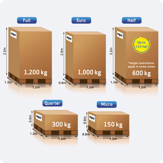 Pallets have a higher level of durability than their cardboard packet cousins, although they are consequently more expensive to send. And unlike packages, they can take a lot of weight (up to two tonnes, in fact), making sending a pallet more cost-efficient.